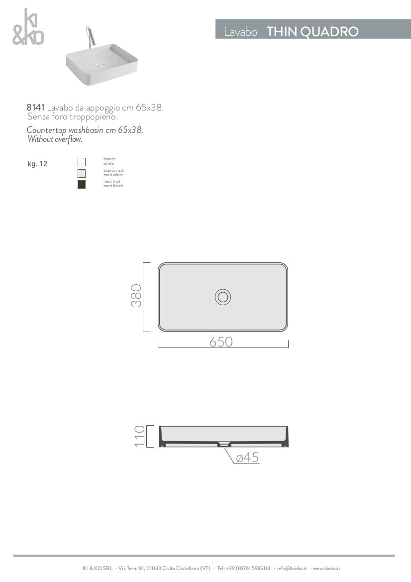 Lavabo quadrato da appoggio bordo fino Thin 38