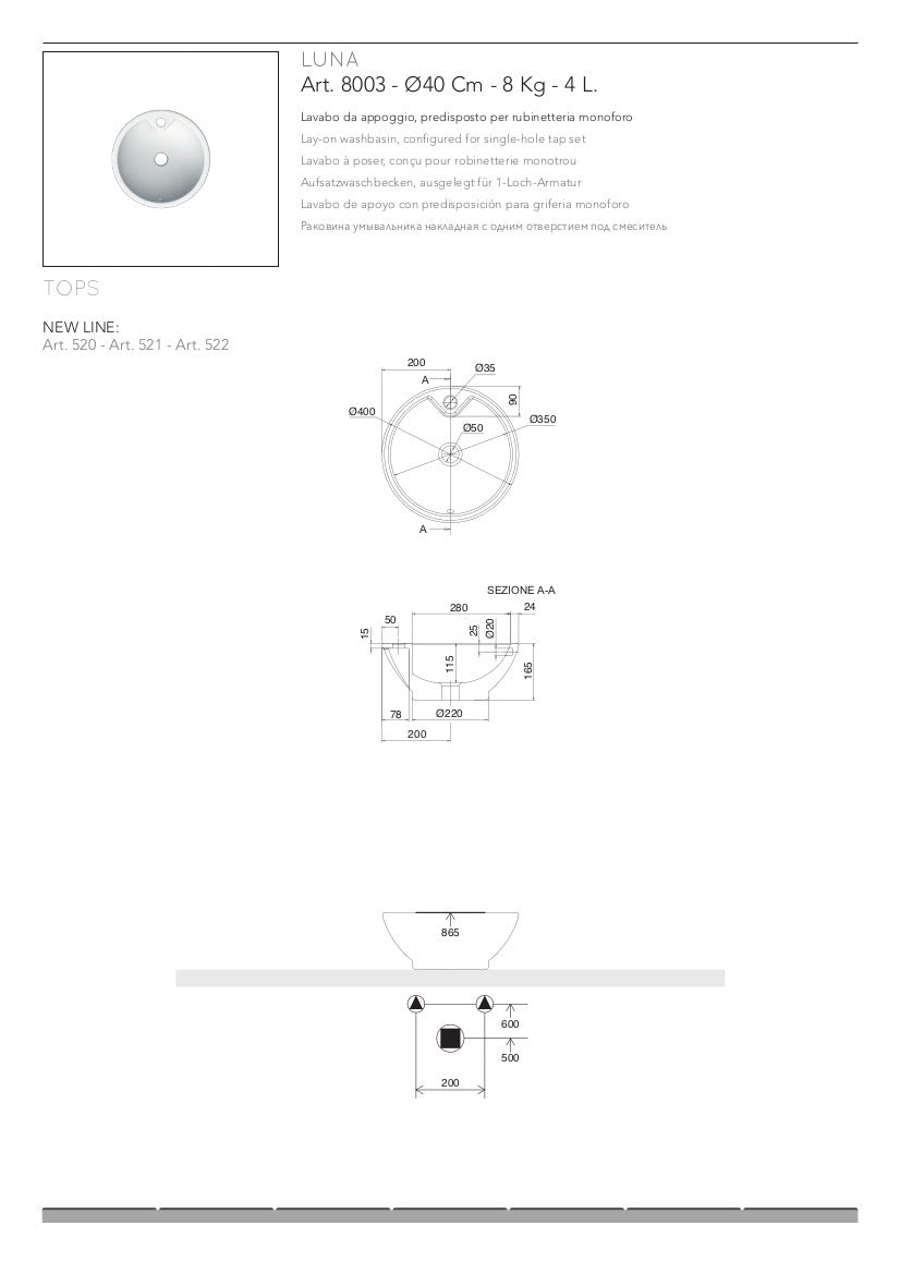 Lavabo da appoggio Luna8003