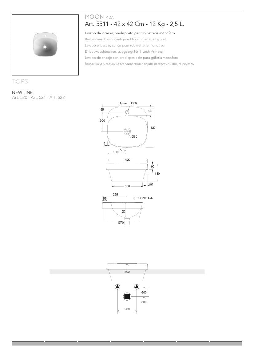 Dimensioni lavabo quadrato 42x42xH18 cm