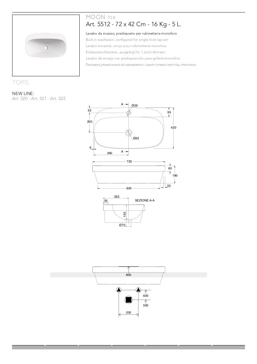 Dimensioni lavabo rettangolare 72x42xH18 cm