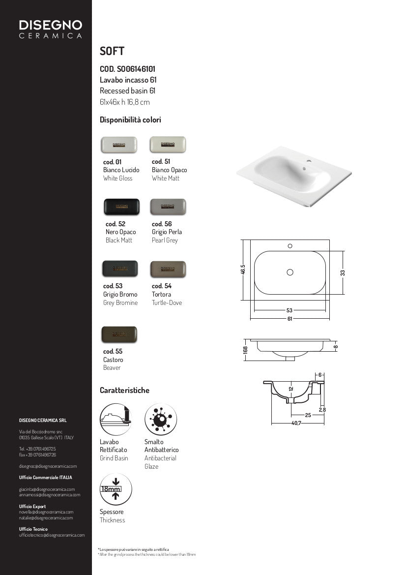 Lavabo da incasso 61x46x h 16,8 cm Soft