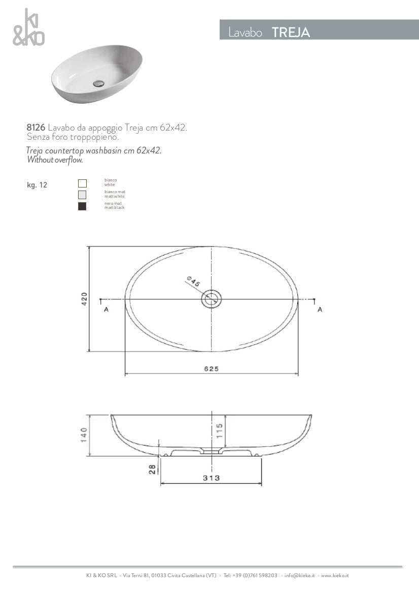 Lavabo ovale da appoggio cm 62x42 Treja
