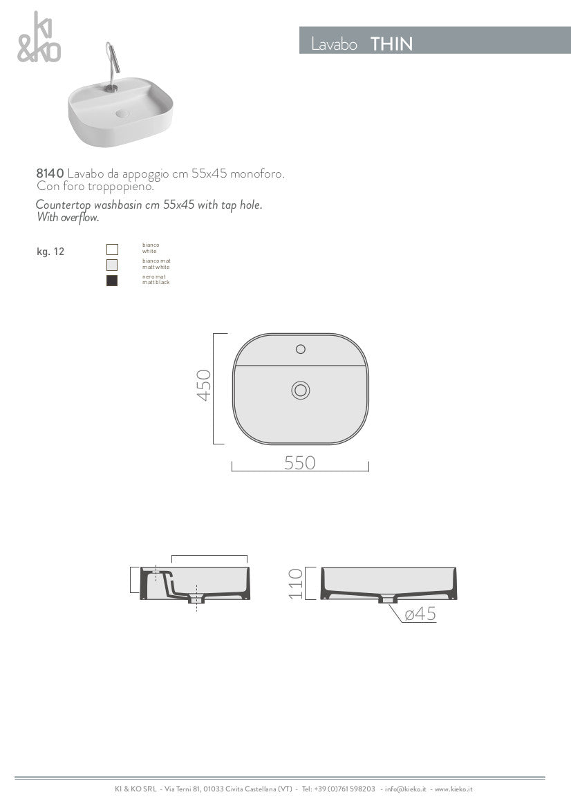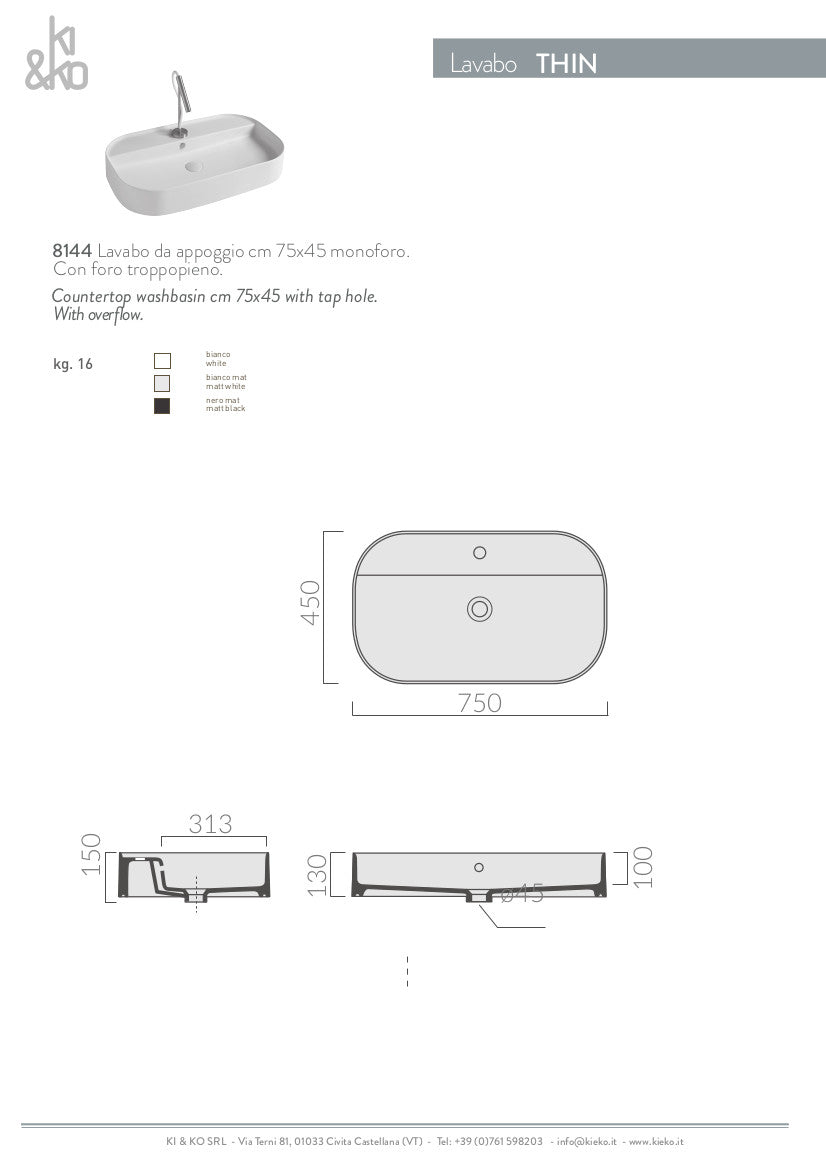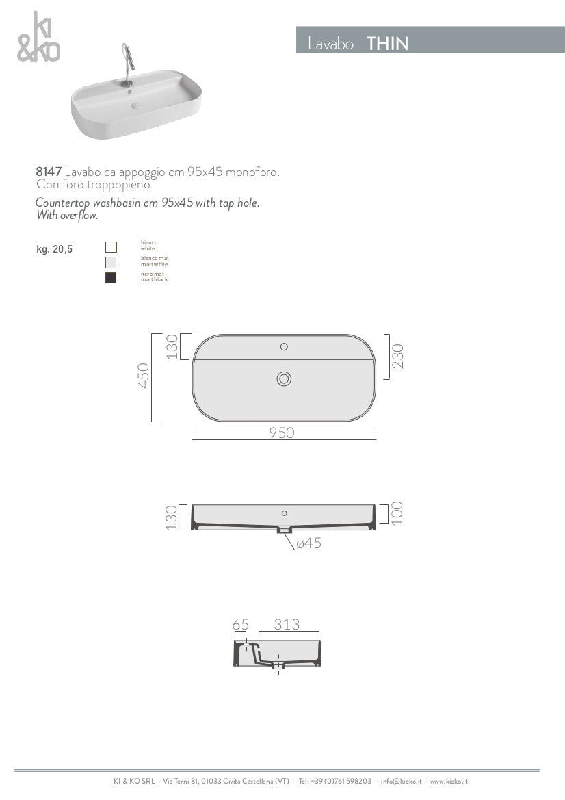 Lavabo in ceramica, bianco, con foro rubinetteria e troppo pieno. Accessori esclusi.
