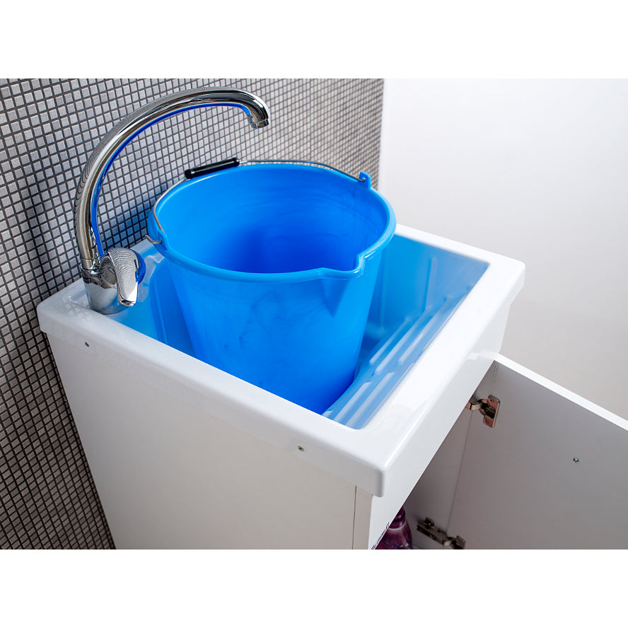 Mobile lavanderia Lemon cm 45 su piedini diametro 6 cm altezza 14 cm, un'anta finitura bianco opaco con box laterali Standard bianco.
