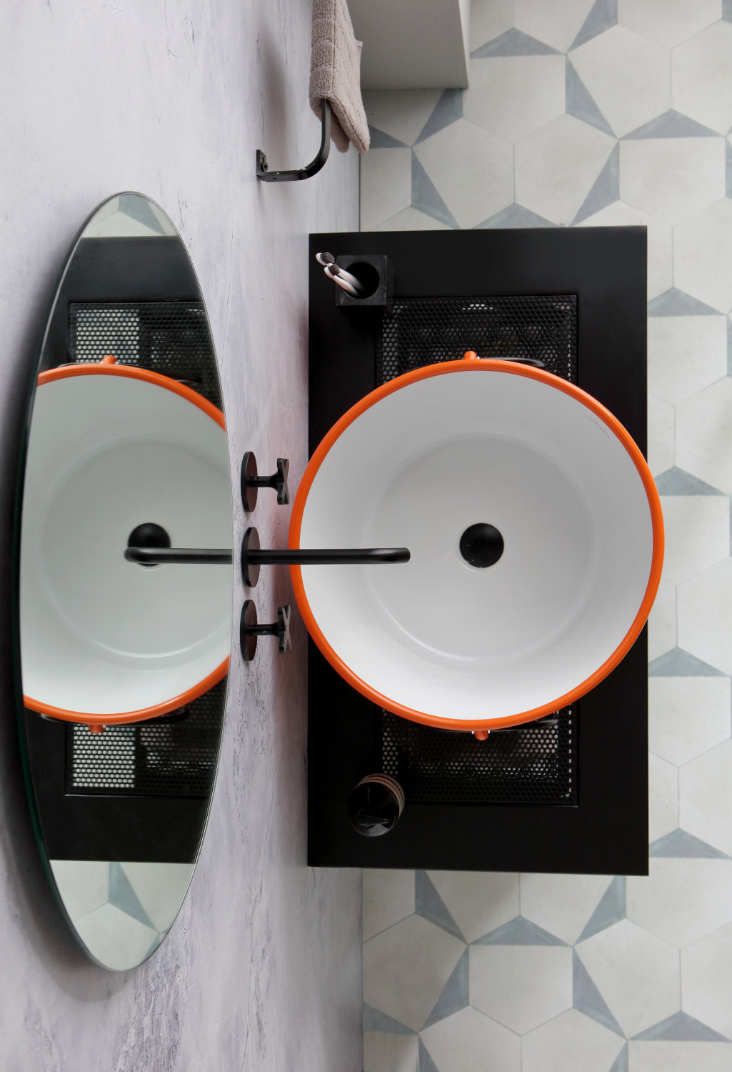 Mobile portalavabo in metallo a terra, disponibile in 2 finiture, per lavabi Tinozza, Bacile, Pietra e Terra