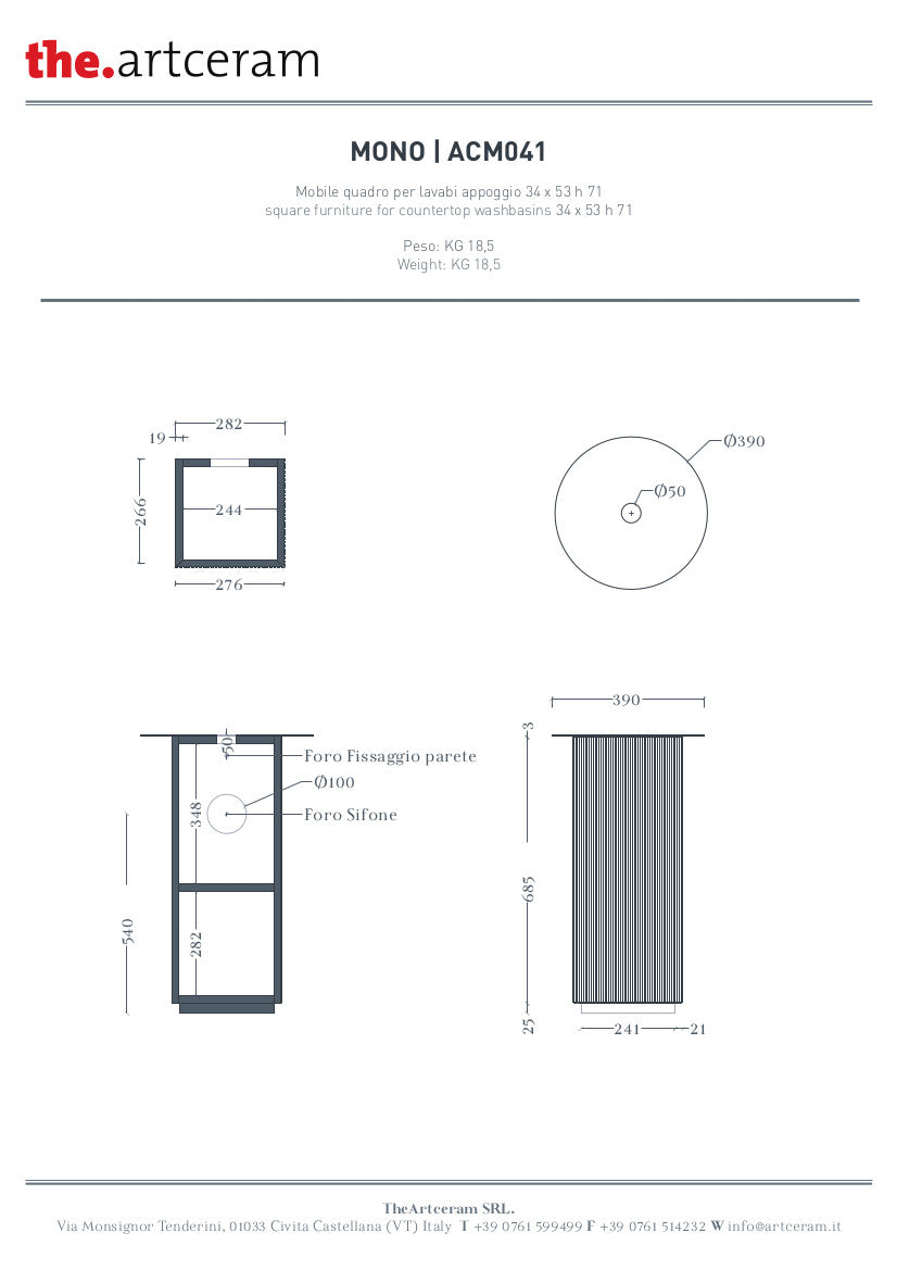 Mobile quadrato H72 cm per lavabi da appoggio Mono