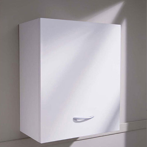 Pensile sospeso Pracktica con una o due ante con maniglie satinate e ripiano interno ad altezza variabile, colore Bianco.