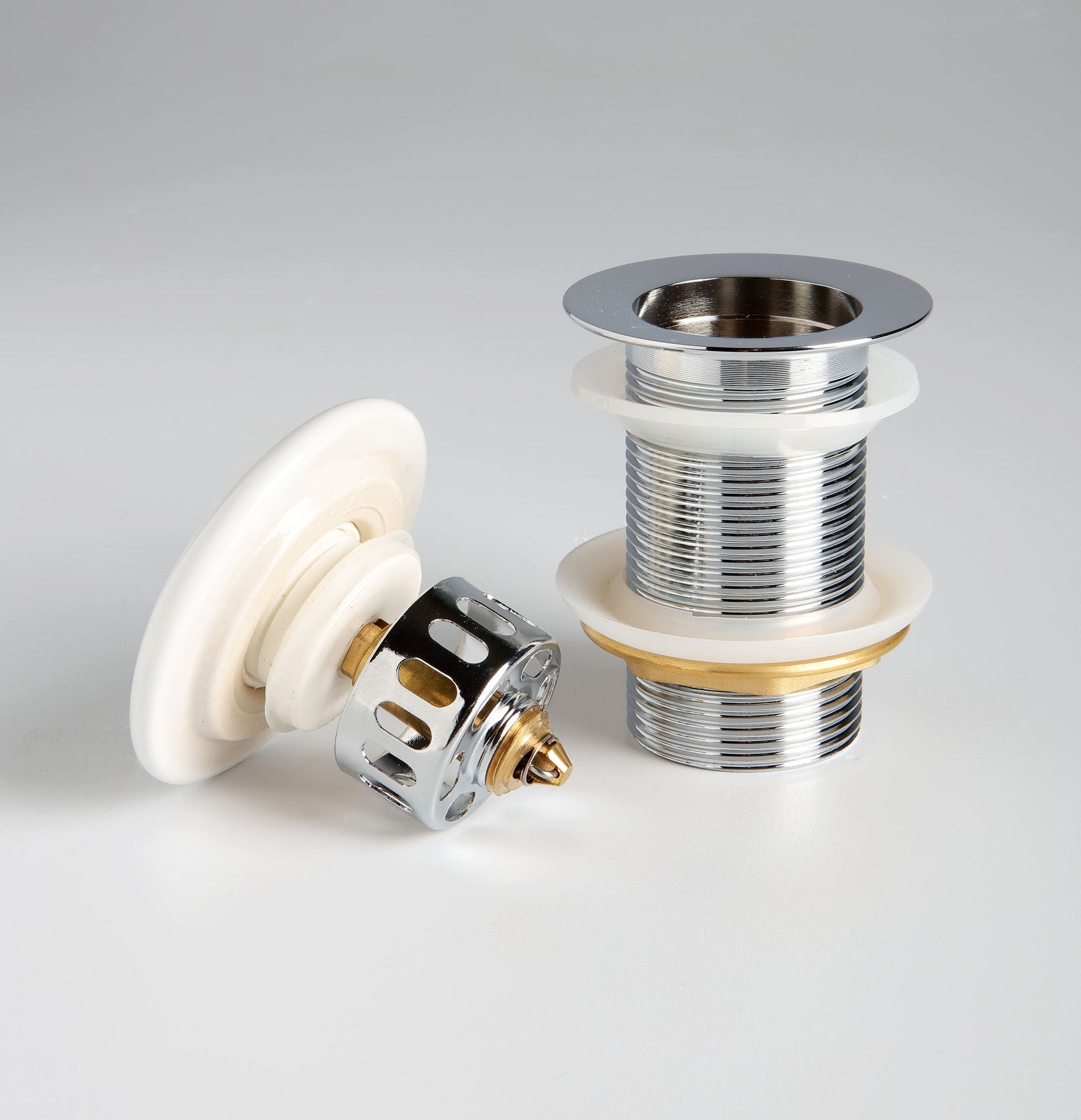 Disponibile in tutte le finiture dei nostri lavabi e in versione cromata senza tappo in ceramica.