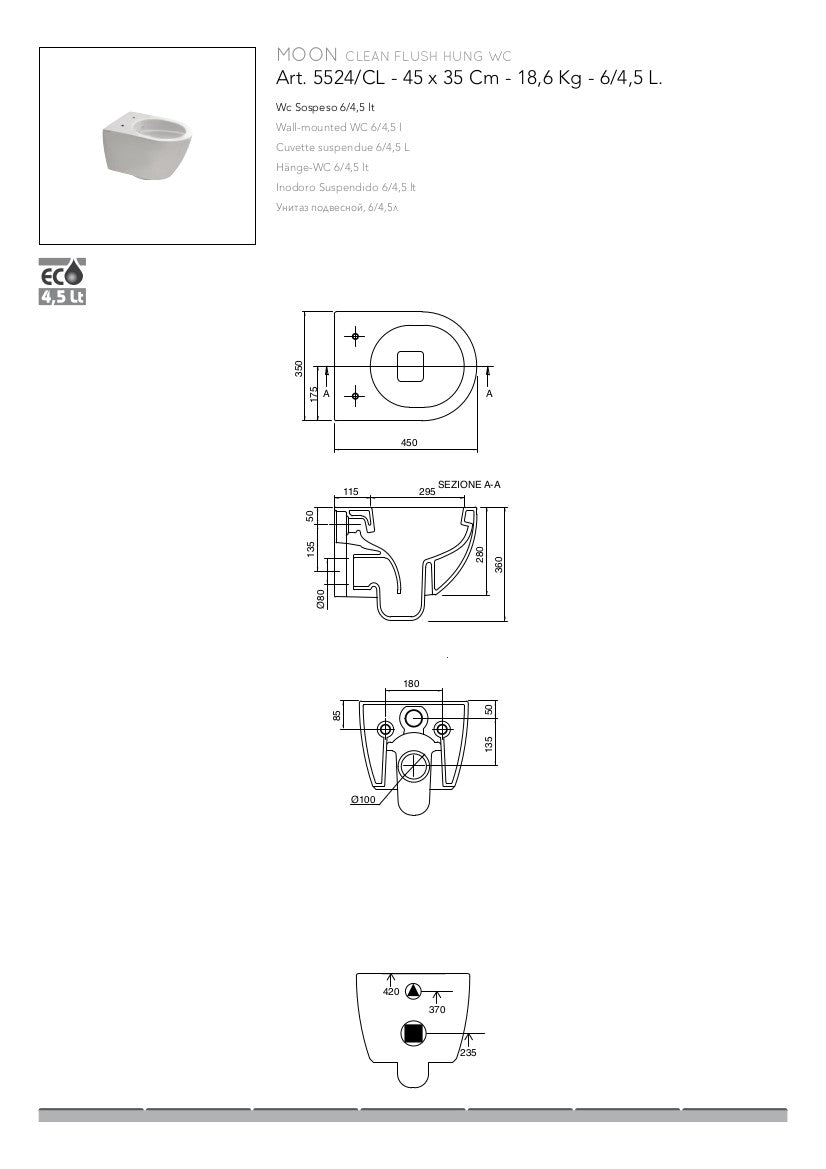 Sanitari sospesi Clean flush Mini Moon5524/CL+5525