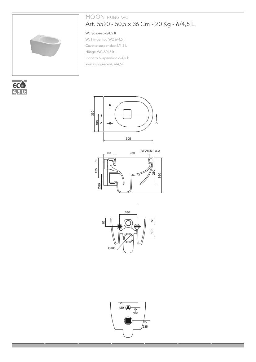 Il vaso sospeso ha una capacità di 6/4,5 litri. Questi sanitari hanno il lato a parete non smaltato.