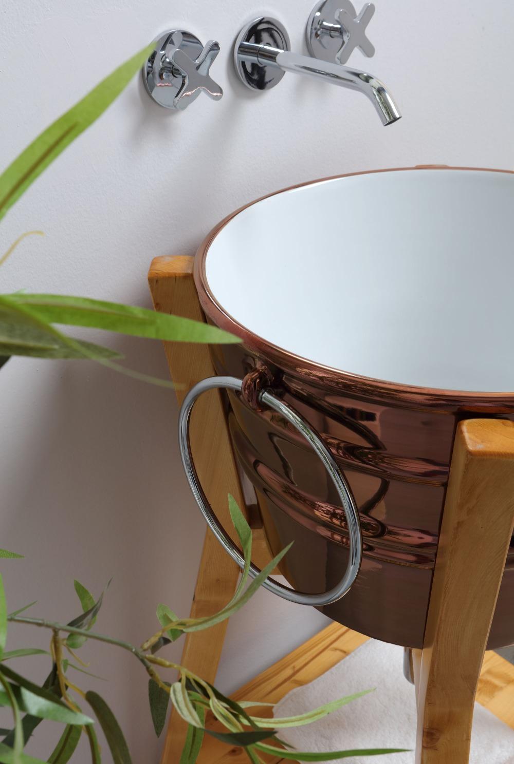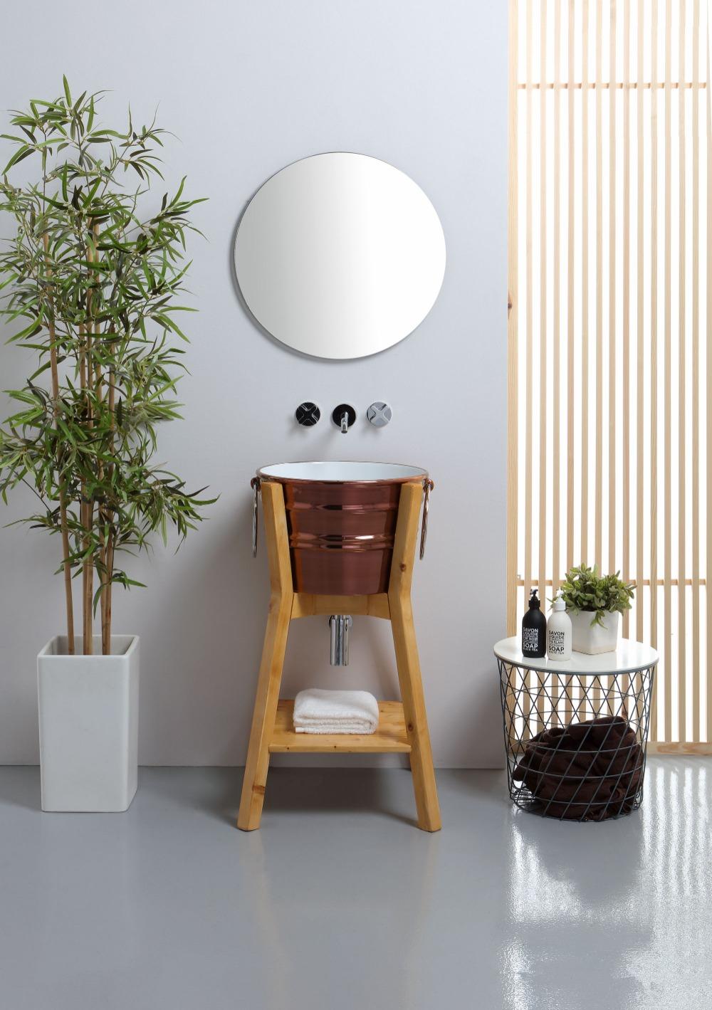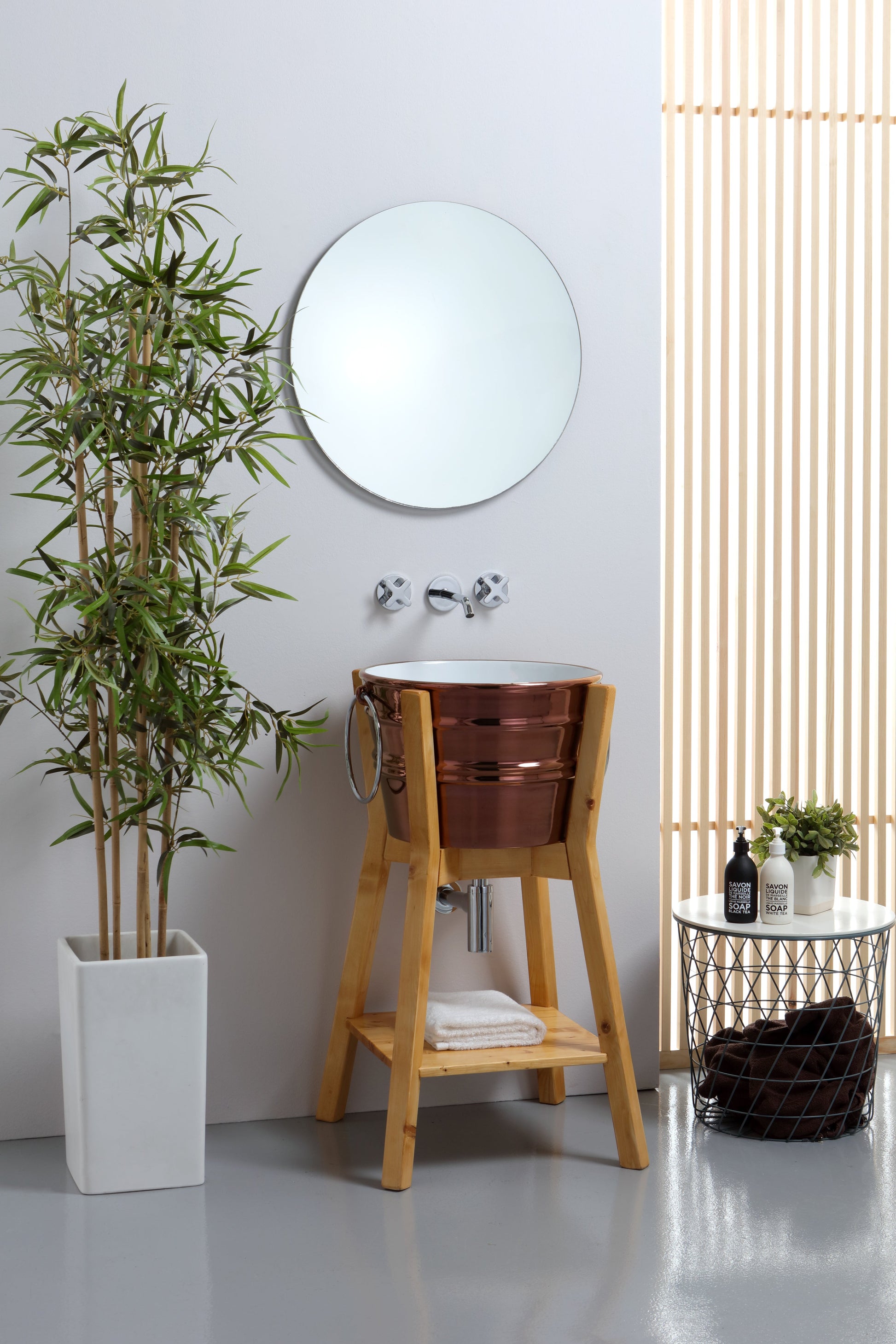 Struttura in legno portalavabo, a terra, con o senza ripiano, disponibile in 3 finiture, per lavabo Bacile.