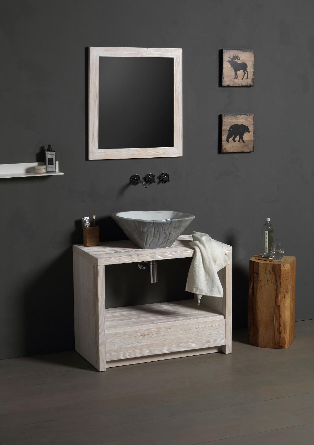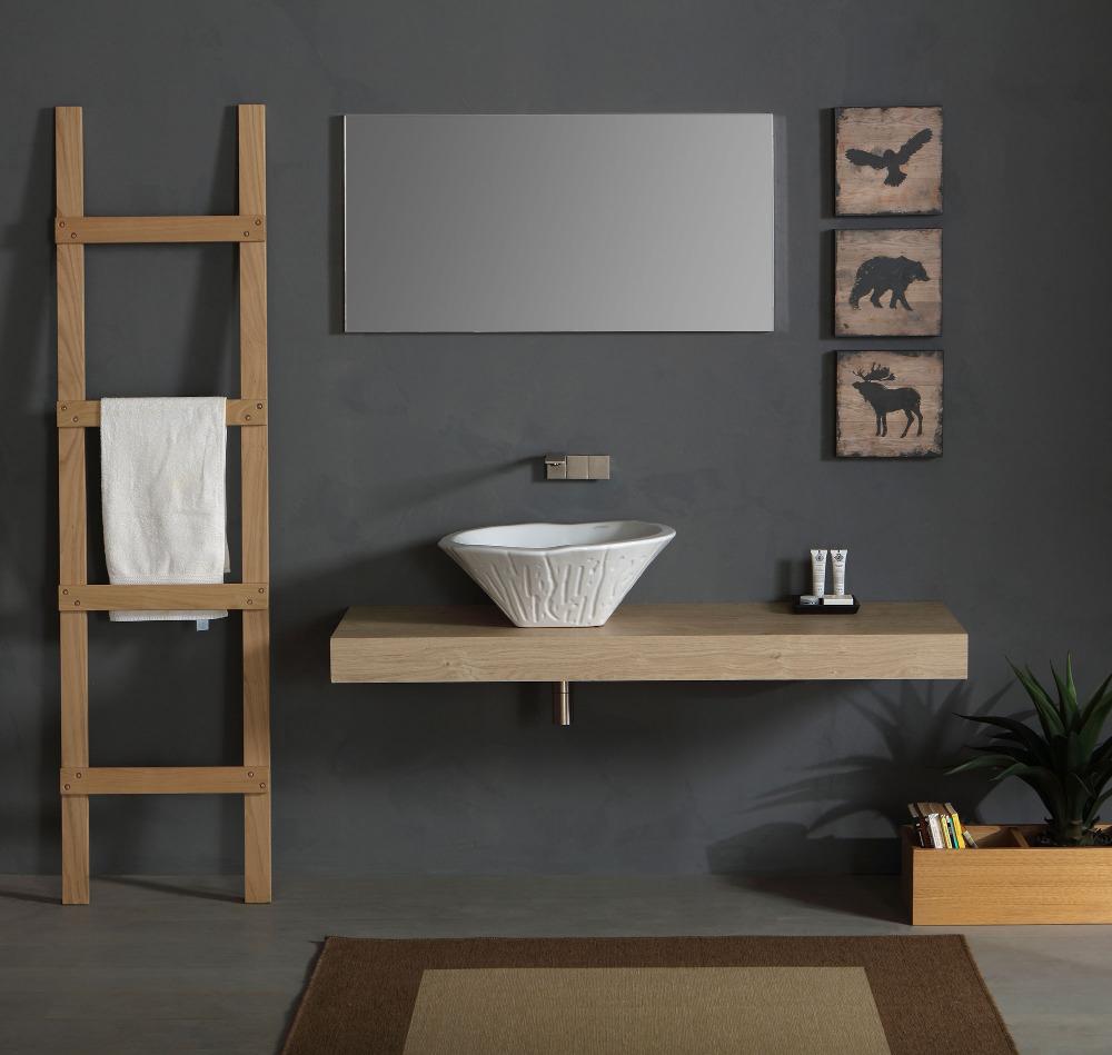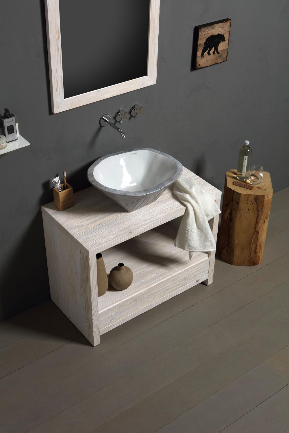 Lavabo d’appoggio o sospeso in ceramica con speciali decorazioni per conferire l'effetto delle pietre naturali.