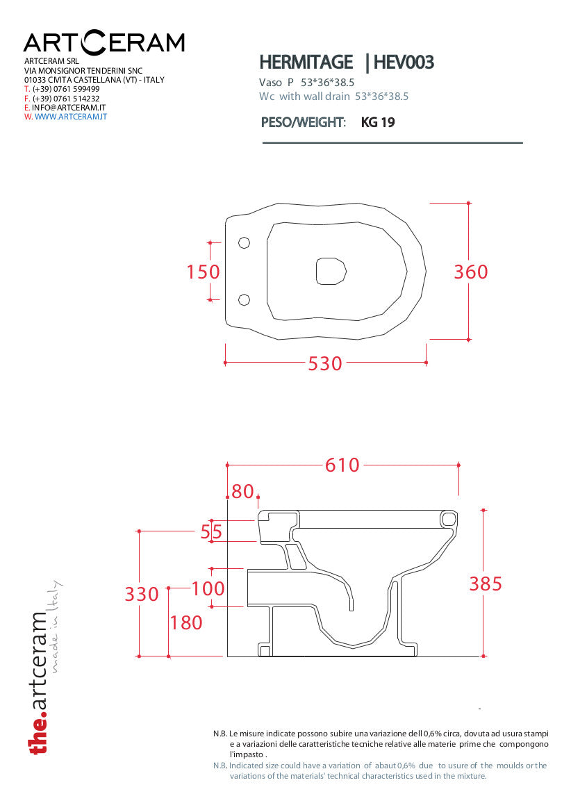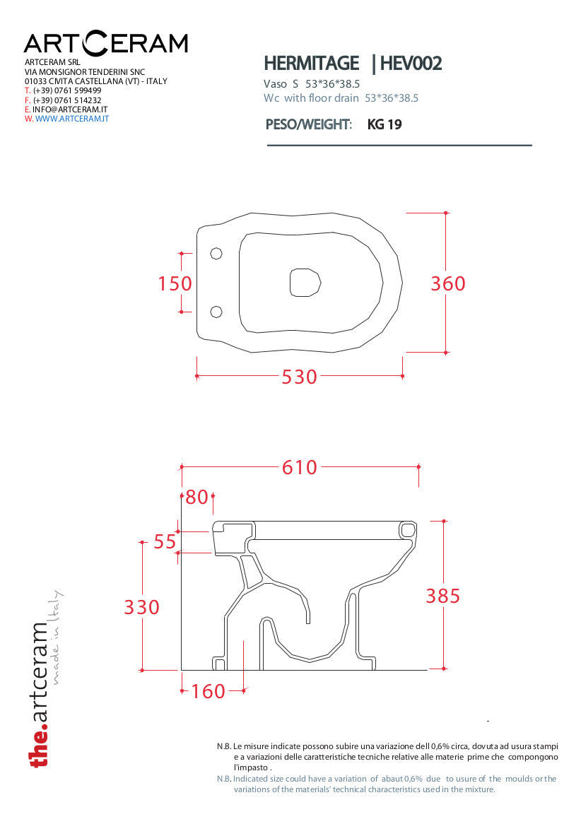 Vaso terra scarico suolo o parete, in ceramica, della collezione HERMITAGE delle dimensioni di 36 x 55. Coprivaso escluso. Possibilità di aggiungere la cassetta di scarico.