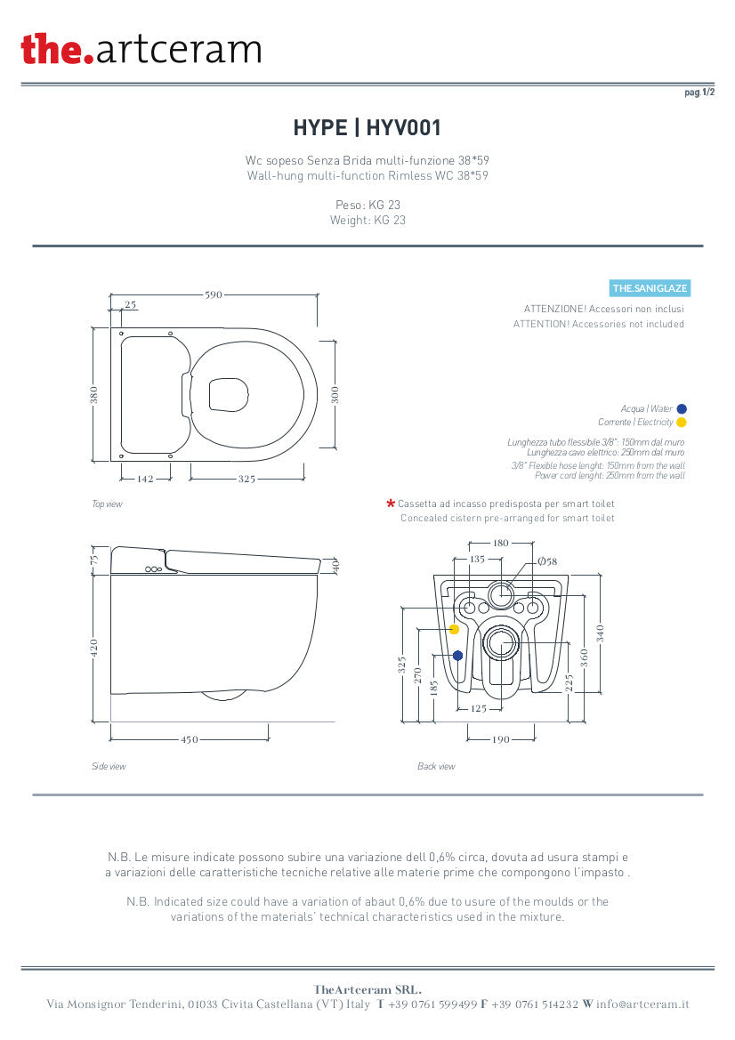 Vaso sospeso in ceramica Senza Brida multi-funzione della collezione HYPE, con modulo bidet elettronico e telecomando, delle dimensioni di 38 x 59.