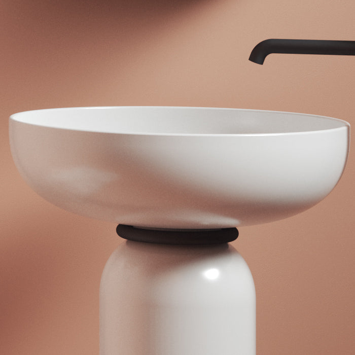 Anello in metallo verniciato da posizionare tra la colonna e il lavabo Jolie. Piletta cromo inclusa nel prezzo.