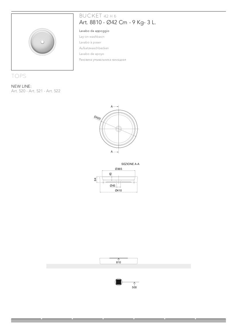 Questo modello di lavabo Bucket si distingue per la sua forma rotonda e l'altezza minima di soli 6 cm, diventando l'oggetto simbolo del bagno, trasformandosi in un lavabo da appoggio o lavamani.