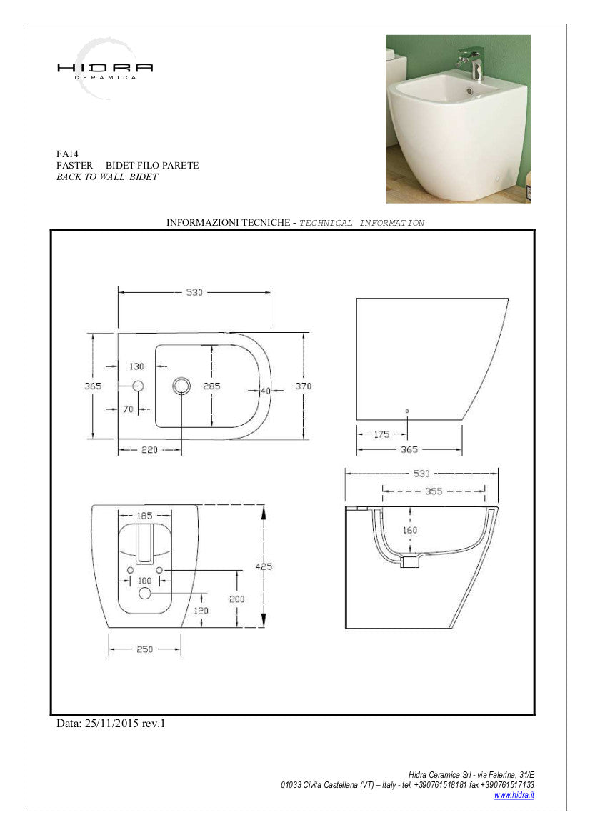 Bidet filo muro - 1 foro, kit fissaggio a pavimento incluso